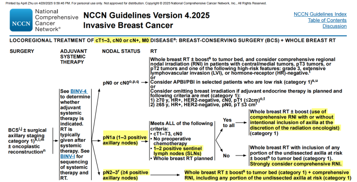 指南里也提到了对于 N1 的患者,鼓励其积极参加国内外针对区域淋巴结放疗的前瞻性临床研究。