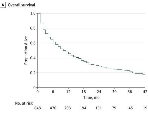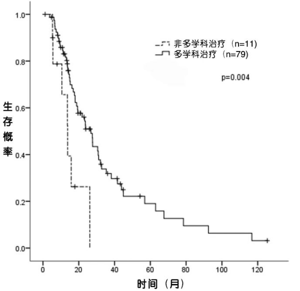 ▲ 按多学科治疗分层的脑转移后的总生存期