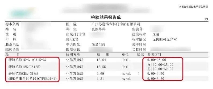 ▲ 门诊部常开的乳腺肿瘤组合检验项目单