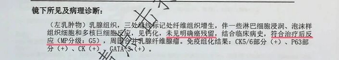 如上图所示,该患者的MP分级为G5,意味着已达pCR