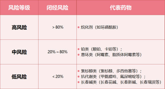 不同化疗药物对卵巢功能影响及其导致闭经风险如下↓