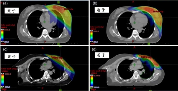 目前在乳腺癌中,多个对比质子放疗和光子放疗的临床研究都提示,质子放疗和光子放疗在降低肿瘤局部复发率、延长患者生存期等多个疗效指标上,表现旗鼓相当,并没有发现显著差异。