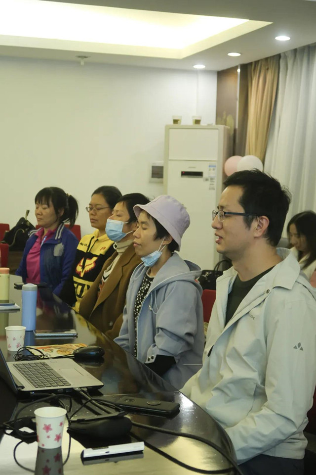 ◉ 呼吸,闭上眼睛,鼻吸鼻呼,想象自己漂浮在水面,随着风慢慢飘去。现场,吴博士指导大家进行正念冥想——观呼吸,调整自己的心态和情绪。