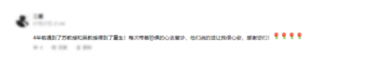 4年前遇到苏教授和吴教授得到了重生!每次带着恐惧的心去复诊,他们说的话让我很心安,感谢你们!
